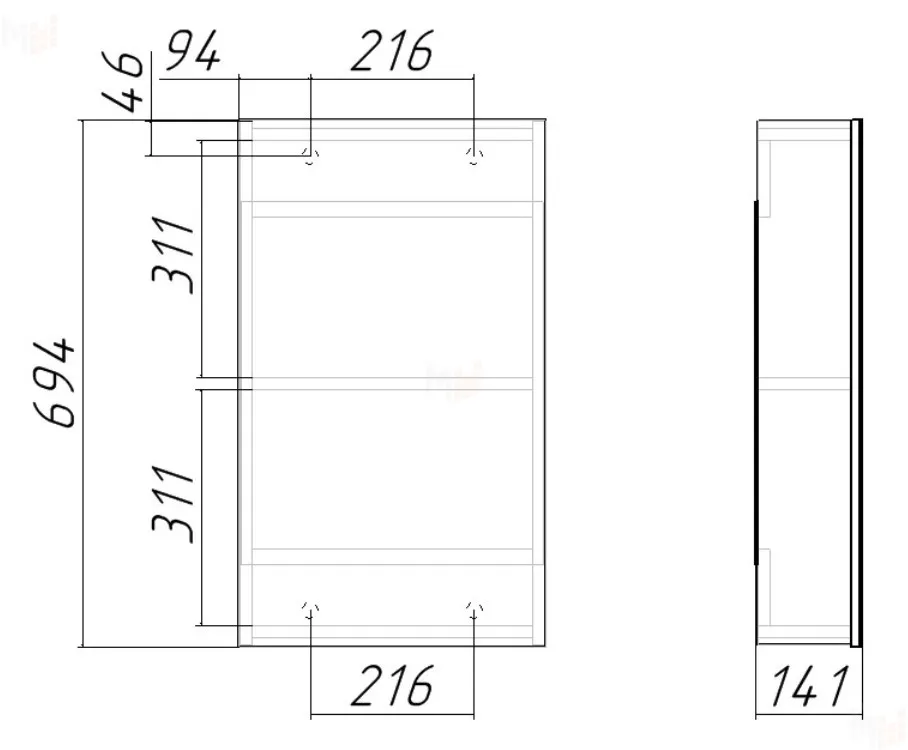 Материал корпуса: ЛДСП, зеркало.