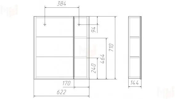 ширина 600 мм, глубина 144 мм, высота 710 мм