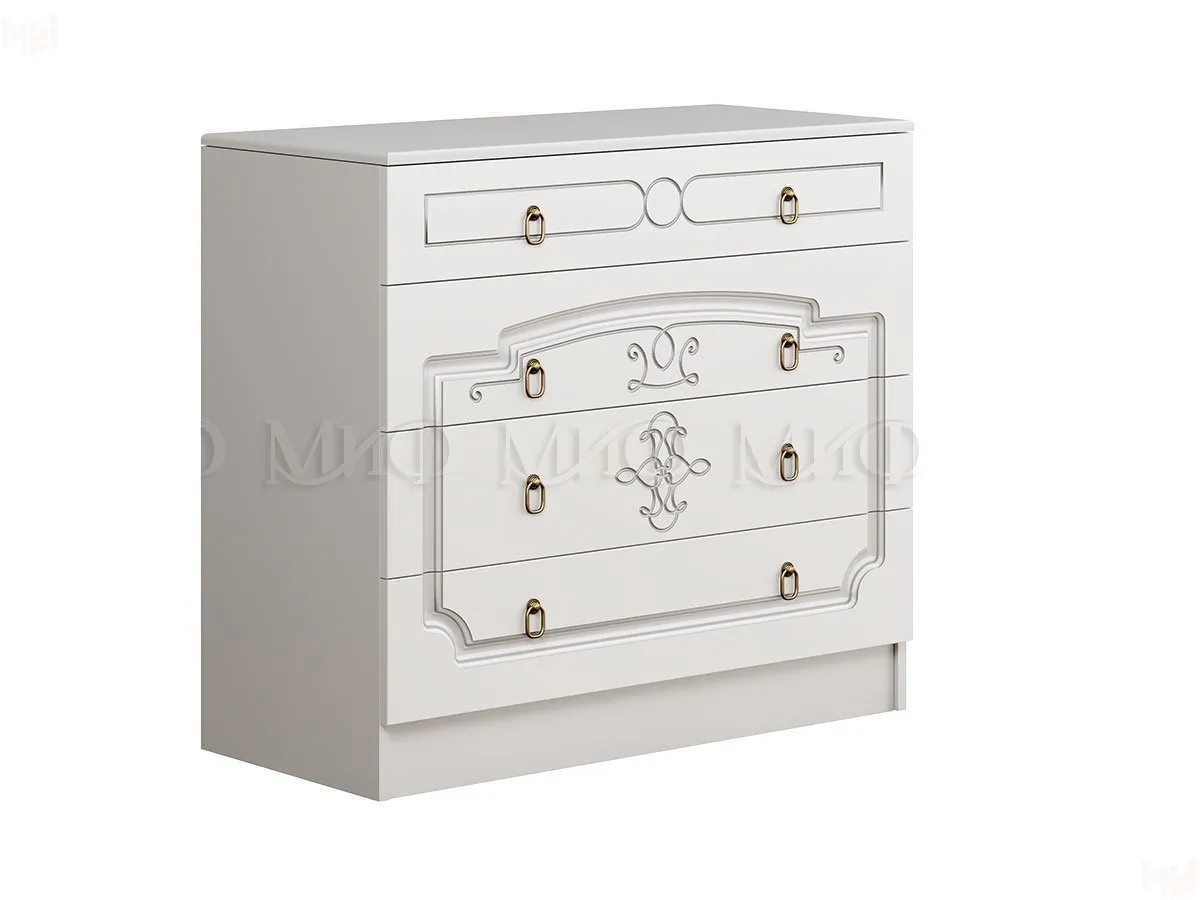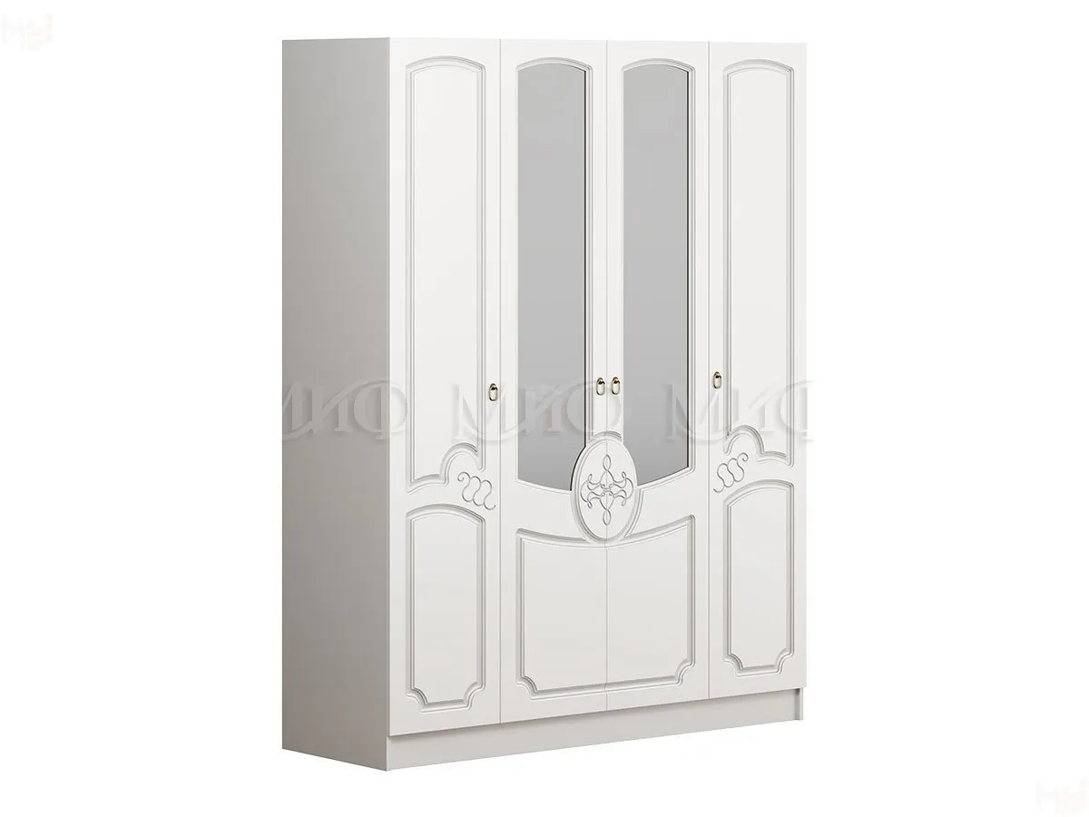 Спальня Каролина выполнена в белом цвете. Каркас ЛДСП белый, фасады МДФ Белый глянец.