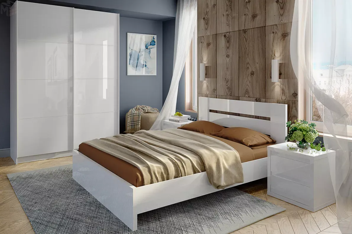 Фасады "Норден" изготовлены из 16 мм ламинированной древесностружечной плиты производства компании «ЭГГЕР» - цвет «Белый». На лицевые поверхности корпуса нанесено высокоглянцевое лаковое покрытие. По периметру фасады закромлены кромкой ABS.