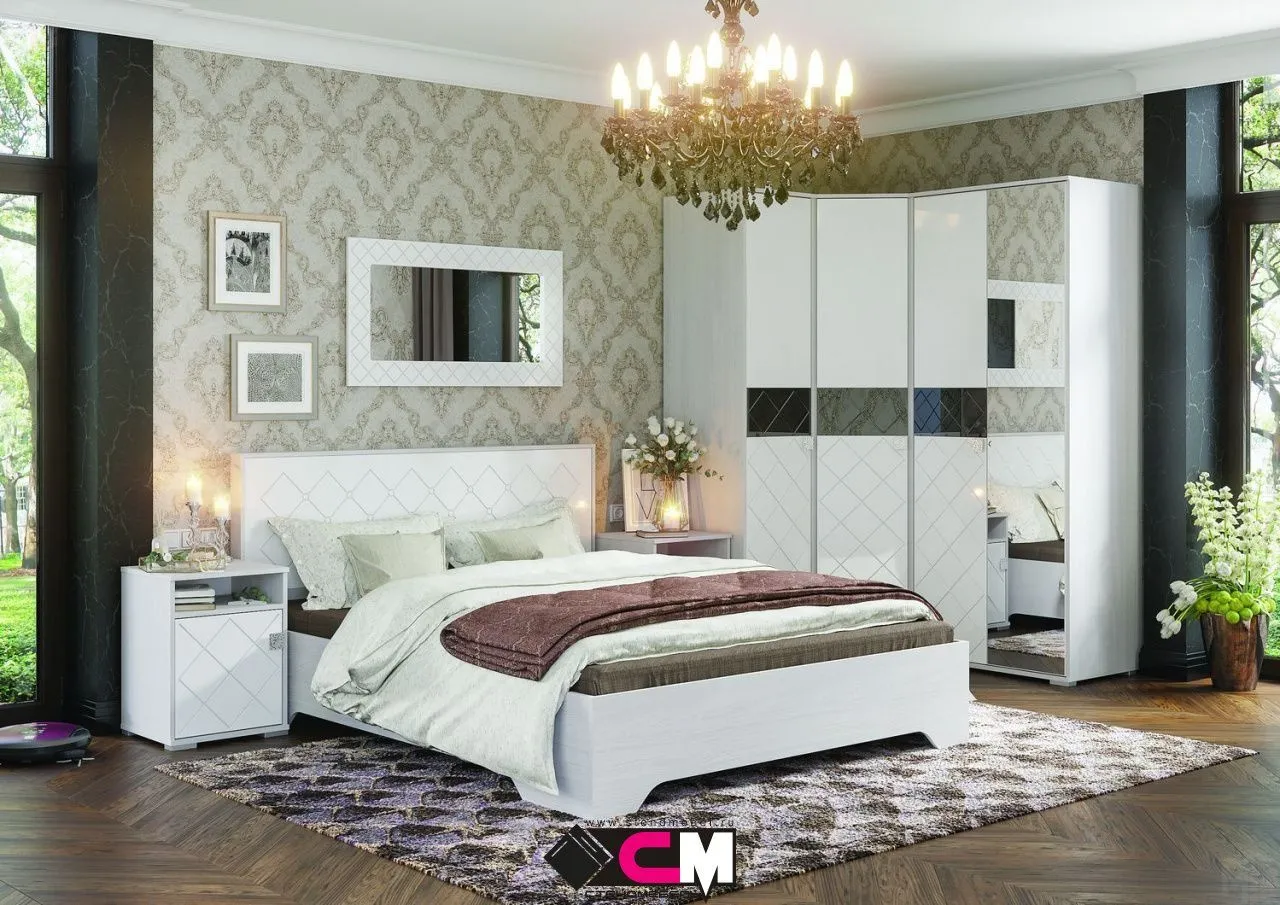 Спальня Сальма (вариант 3) поможет обустроить уютную комнату, где вы сможете отдохнуть не только телом, но и душой. Прикроватные тумбы позволят хранить около кровати все необходимые предметы. Сверху на тумбе можно разместить небольшой светильник, памятная фотография и часы для своевременных подъемов. Кровать предоставит необычайно удобное спальное место, где вы после трудных и насыщенных дней сможете расслабиться, отдохнуть и набраться сил. Высокое изголовье позволит комфортно расположиться перед сном и почитать интересную книгу или посмотреть сериал на планшете. За распашными дверьми 2-х дверного шкафа и пенала находятся по штанге для вешалок-плечиков и полки, которые при необходимости вы сможете снять и разместить одежду на вешалках. В угловом шкафу расположено штанга для вешалок-плечиков с верхней одеждой, деловыми костюмами, красивыми платьями и другой одеждой. Полки пригодятся для сложенной одежды, постельного и нижнего белья, разнообразных аксессуаров и коробок с обувью. -