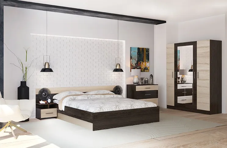 1. Кровать Леси (кантер/сонома) - 1 шт. длина 2050 мм, ширина 1640 мм, высота 705 мм. Размер спального места 200х160см. Матрас приобретается дополнительно.