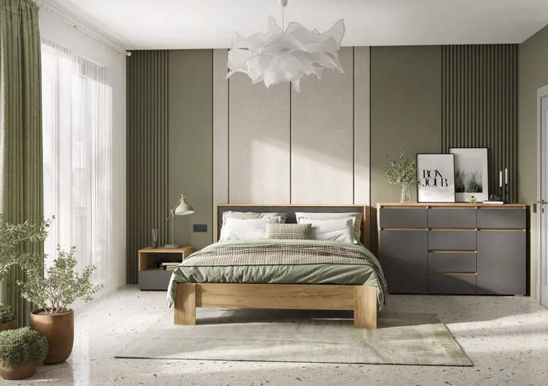 Спальный гарнитур Хелен дуб крафт золото - серый графит комплект-2