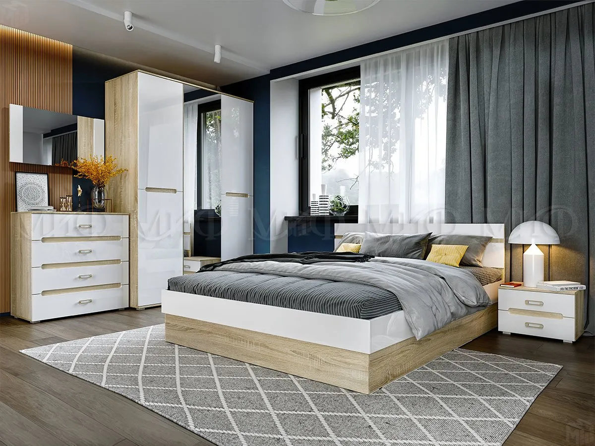 Обычная мебель может выглядеть достойно и стильно. Именно так можно охарактеризовать эту спальню. Строгость линий и некоторая холодность в дизайне не мешают ей роскошно смотреться в любом помещении.