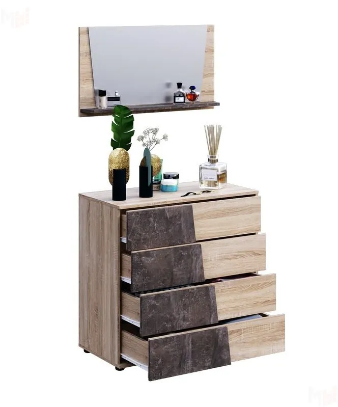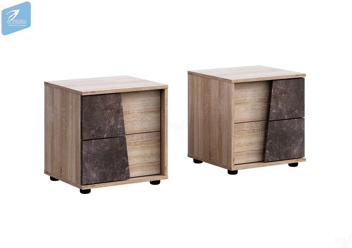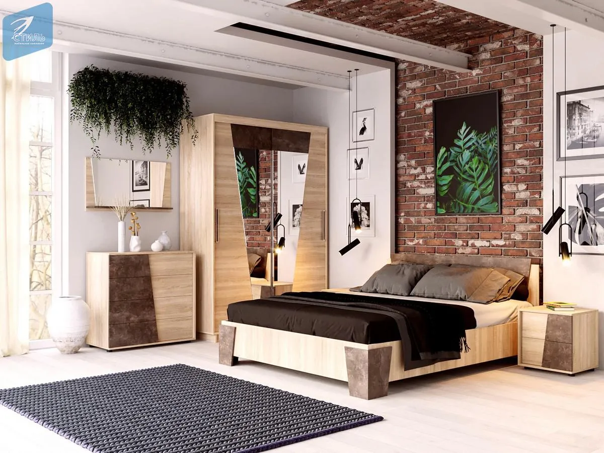 Спальный гарнитур Санремо выполнен в стиле Лофт. Каркас мебели выполнен из ЛДСП Ясень шимо светлый, фасады ЛДСП Ясень шимо светлый/Ателье темный.