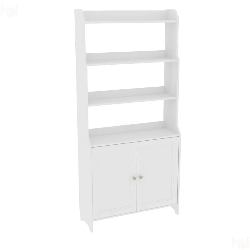 Стеллаж 20 Вествик, 930х320х1980, цвет Белый. Верхняя часть стеллажа с тремя открытми полками, в нижней части одна полка за двумя рамочными дверями. Изготовлен из массива хвойных пород. Крепится к стене. Мебель для жилых помещений. Гарантийный срок 24 месяца.