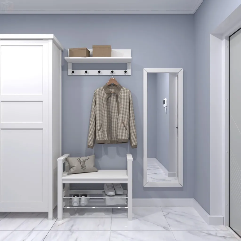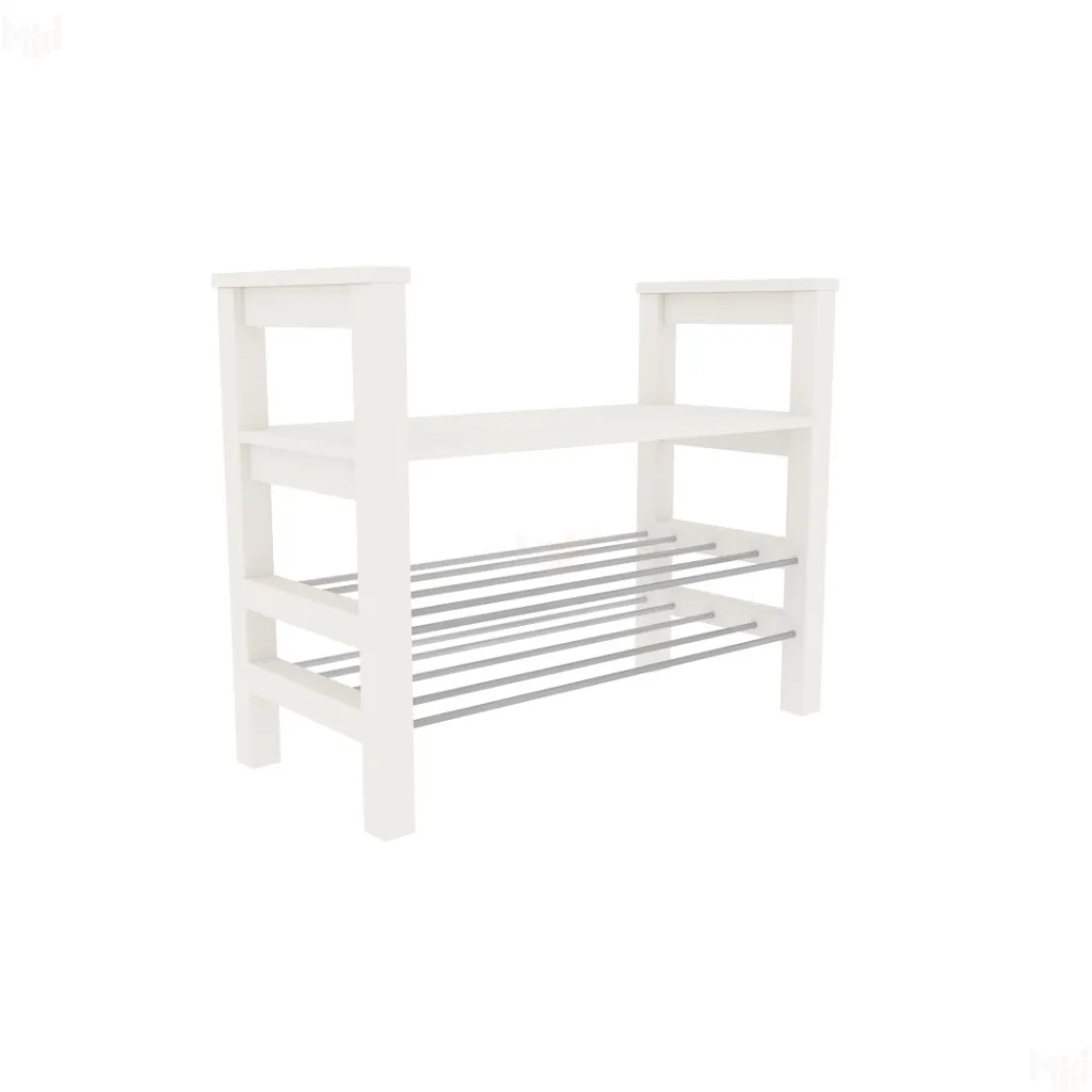 Стеллаж выполнен из массива сосны. Цвет белый.