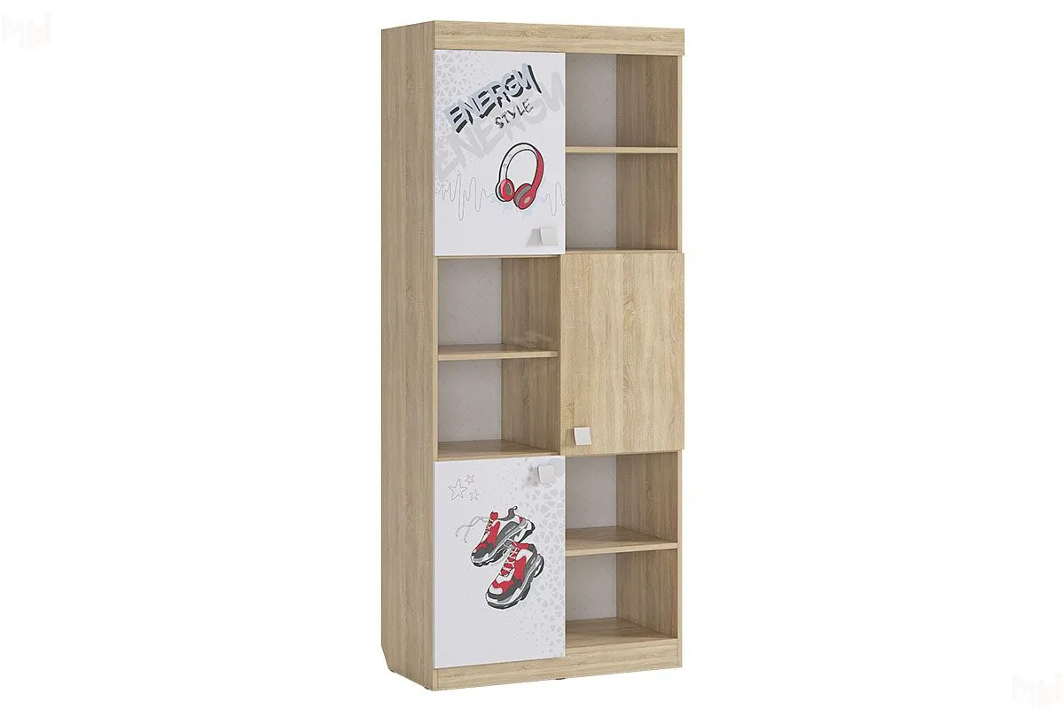 Стеллаж с открытыми и закрытыми полками идеально подойдет для книг, игрушек и мелочей. Эффектный принтерный рисунок на фасадах выдержан в общем стилистическом решении. Рисунок устойчив к истиранию и ультрафиолету. Детская «Энерджи»- все, что нужно для современного подростка! -