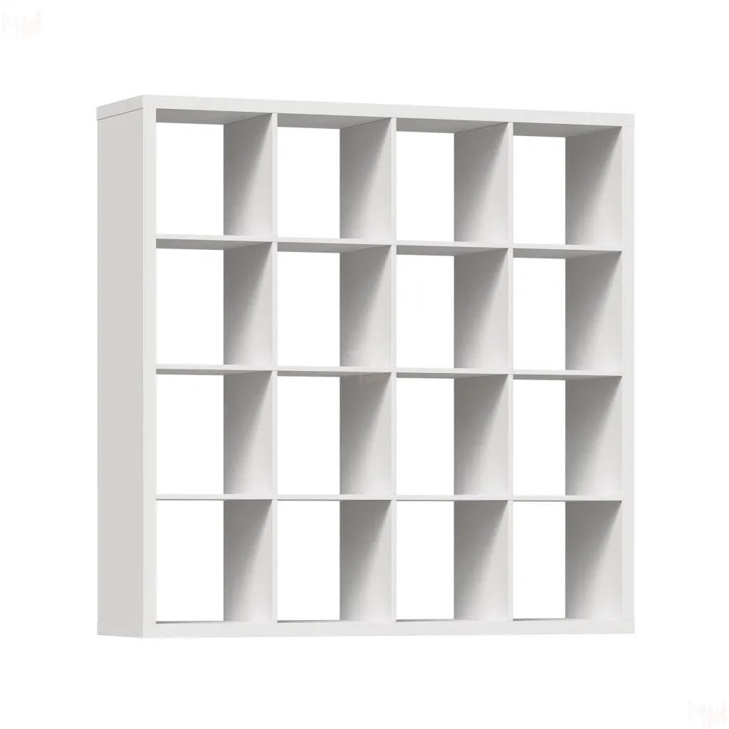 Стеллаж Фора 16 выполнен из тамбурата белого цвета.
