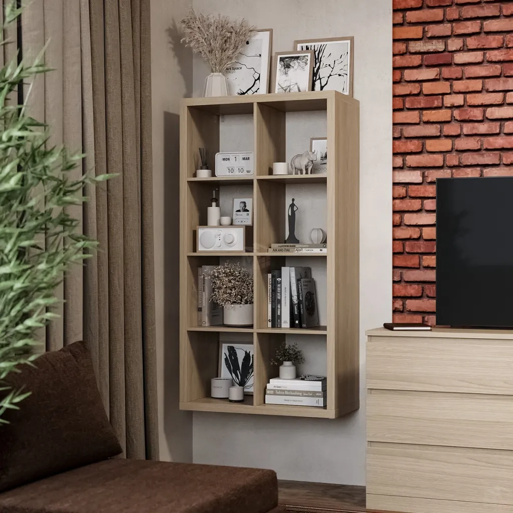 Стеллаж Фора 8 выполнен из тамбурата цвета дуб беленый.
