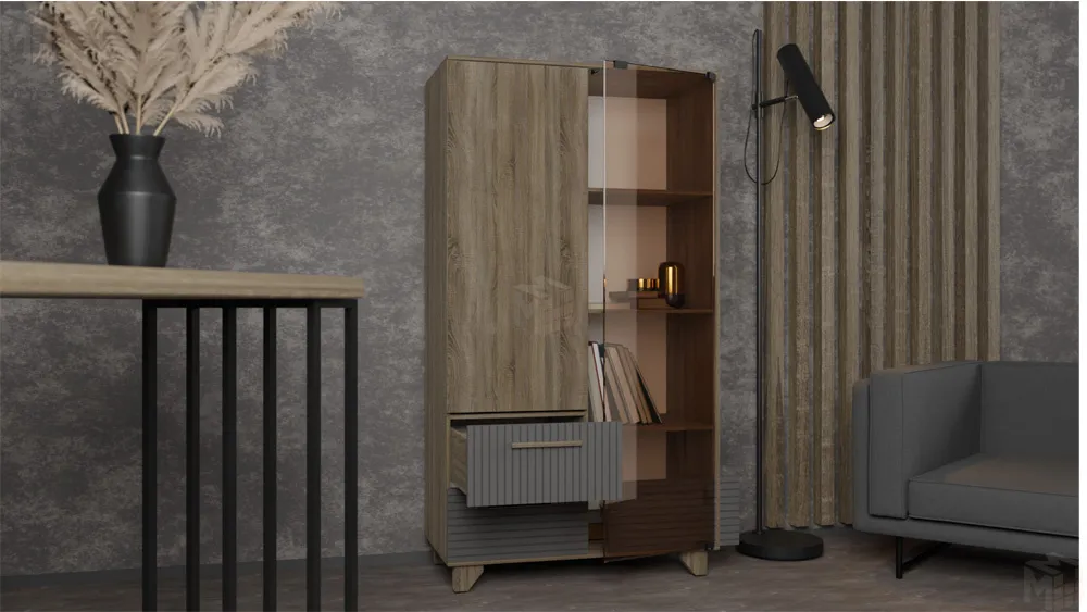 Стеллаж Копенгаген со стеклом (дуб самдал/серый графит)