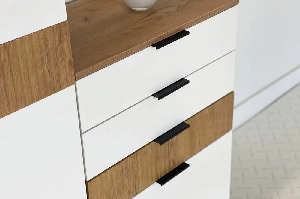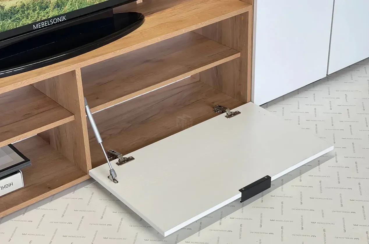 Стенка в гостиную Бери дуб крафт золотой/белое дерево
