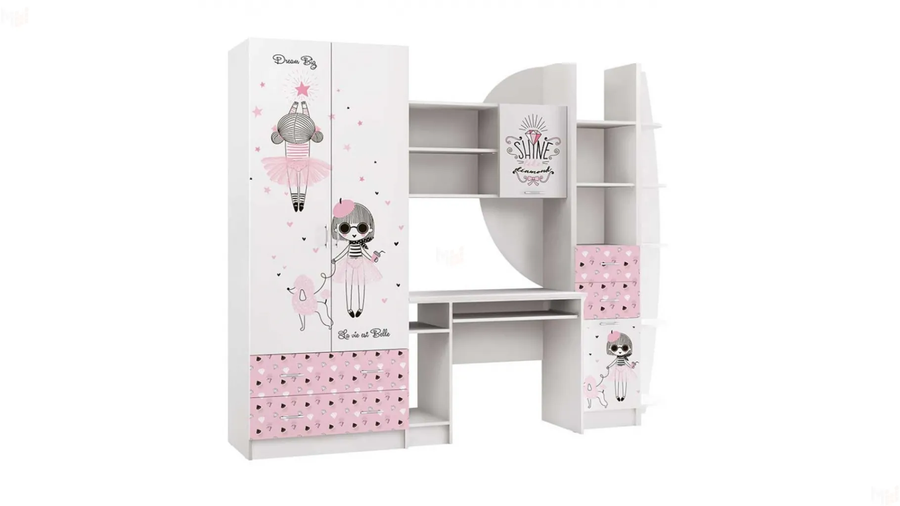 Стенка Юниор-2 является частью модульного набора мебели. К ней можно докупить кровать и комод.