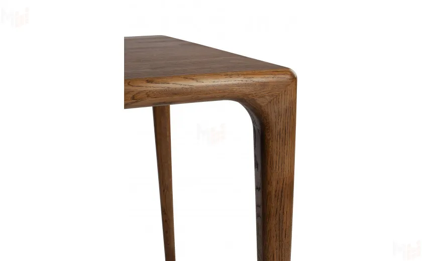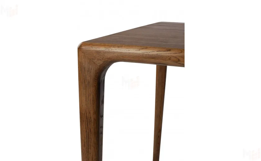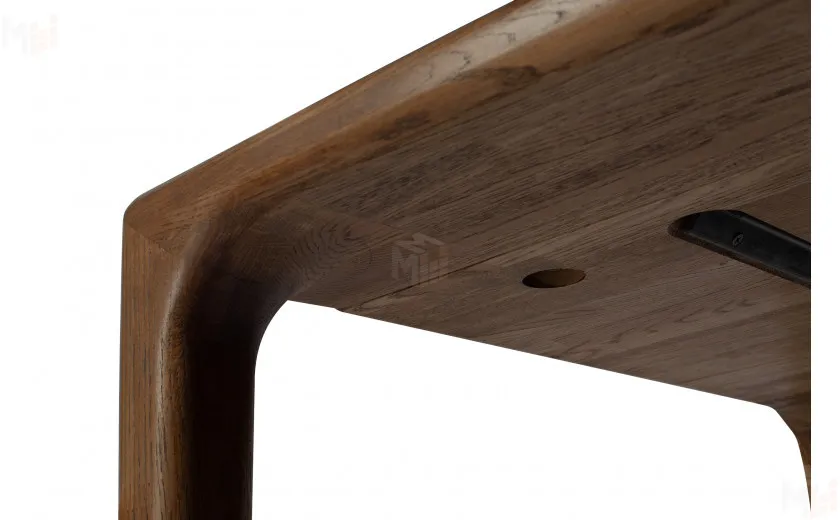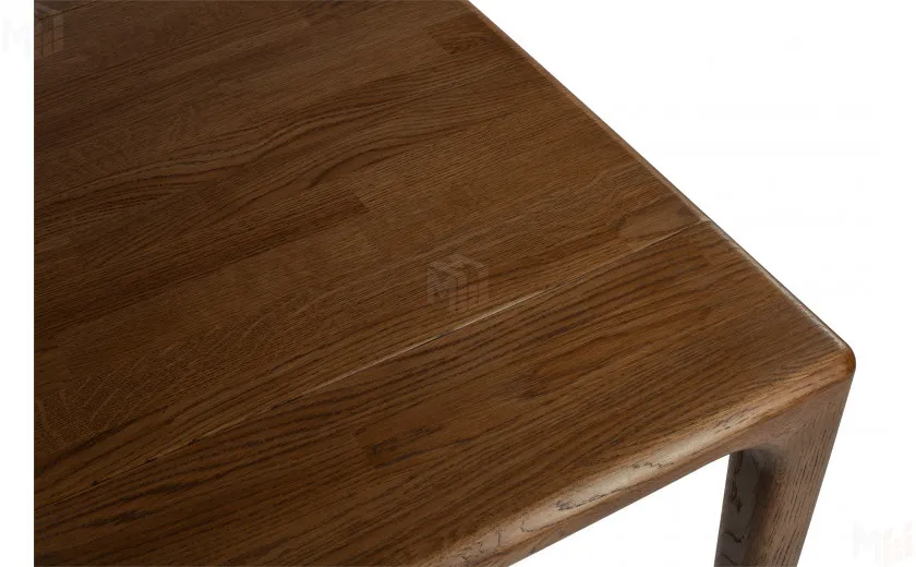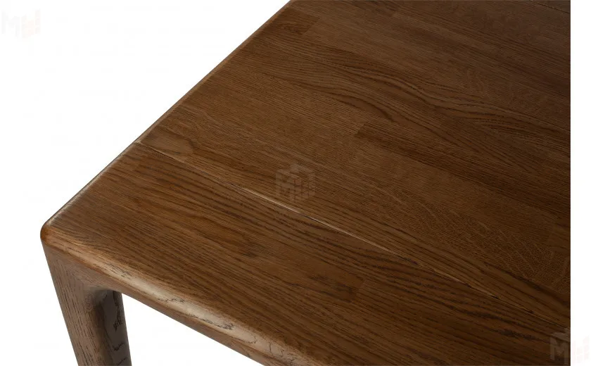 Стол полностью выполнен из массива дуба, без использования каких-либо искусственных материалов, например таких как МДФ или ЛДСП. Стол имеет прямоугольную форму размером 180 см в длину и 80 см в ширину. Столешница толщиной 40 мм, выполнена из массива дуба и плавно и изящно переходит в ножки стола, что придает ему уникальный современный внешний вид. Стол покрывается маслом OSMO, которое отлично подчеркивает уникальный рисунок натурального материала. За столом можно с комфортом разместить восемь персон.