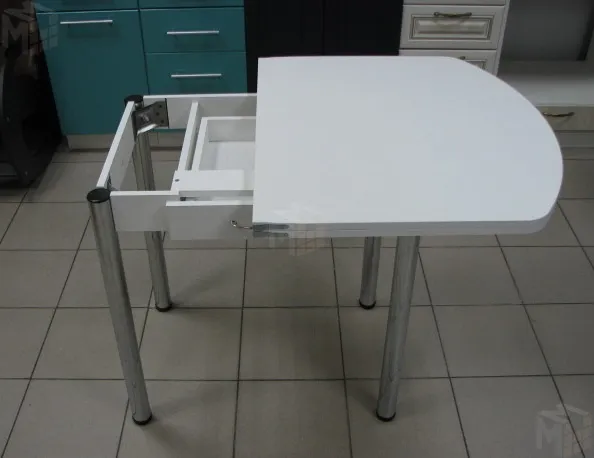 Стол Евро поворотно-раскладной с ящиком 780*680 (белый) ножки хром