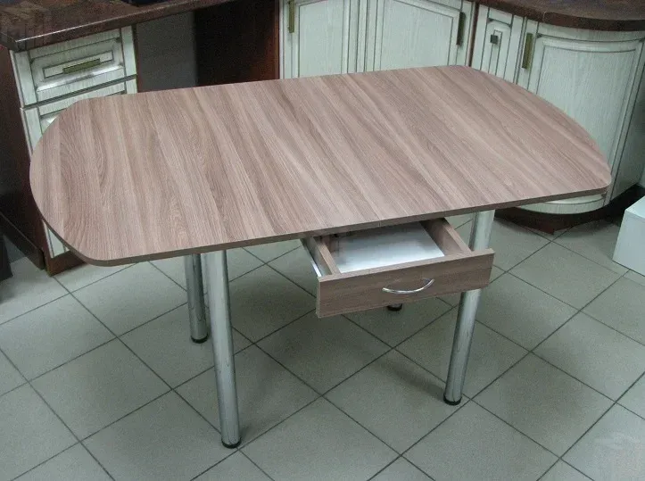 Стол Евро поворотно-раскладной с ящиком 780*590 (ясень шимо тёмный), ножки хром