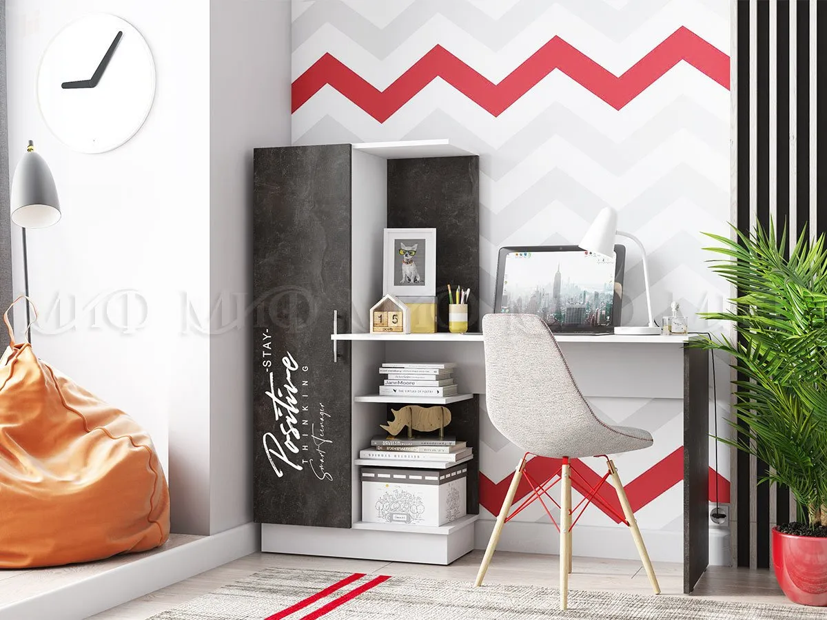 Стол с фотопечатью. Корпус ЛДСП Белый, фасады ЛДСП Бетон темный.