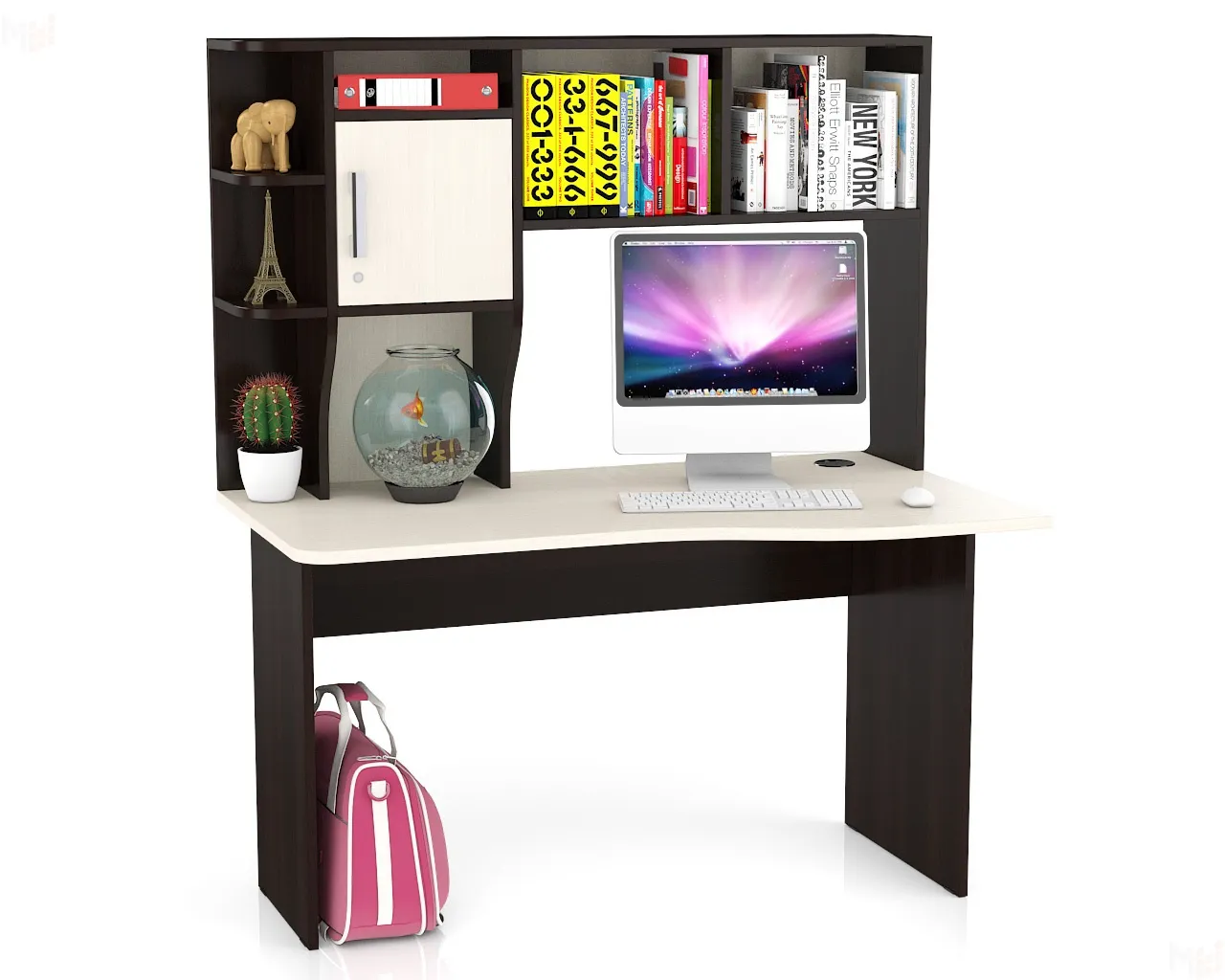 Компьютерный стол Лидер 5 с надстройкой со множественными отделениями для хранения. можно использовать для настольного компьютера, либо как письменный стол. Изготовлен из ламинированного ЛДСП с применением кромки АБС. Поступает в разобранном виде в упаковке.