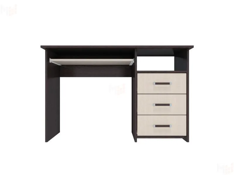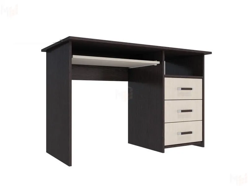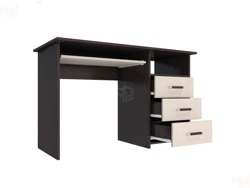 Стол имеет выкатную панель для клавиатуры длиной 350 мм на роликовых направляющих и выкатные ящики на роликовых направляющих длиной 400 мм.