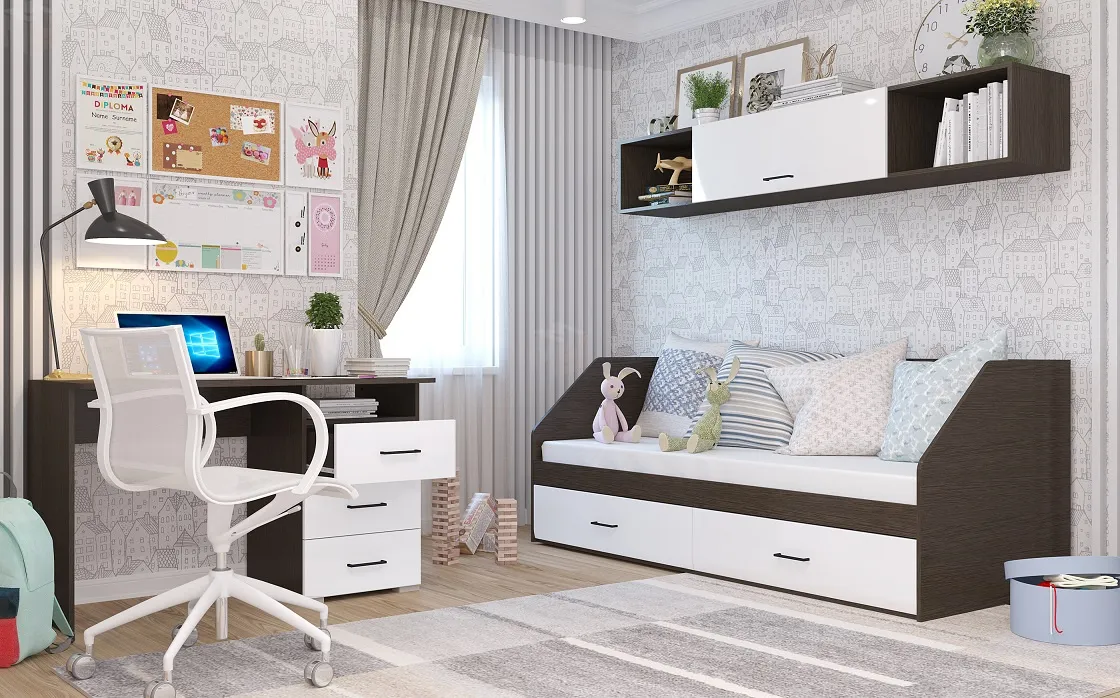К столу можно докупить навесную полку серии Ненси и другие модули. -
