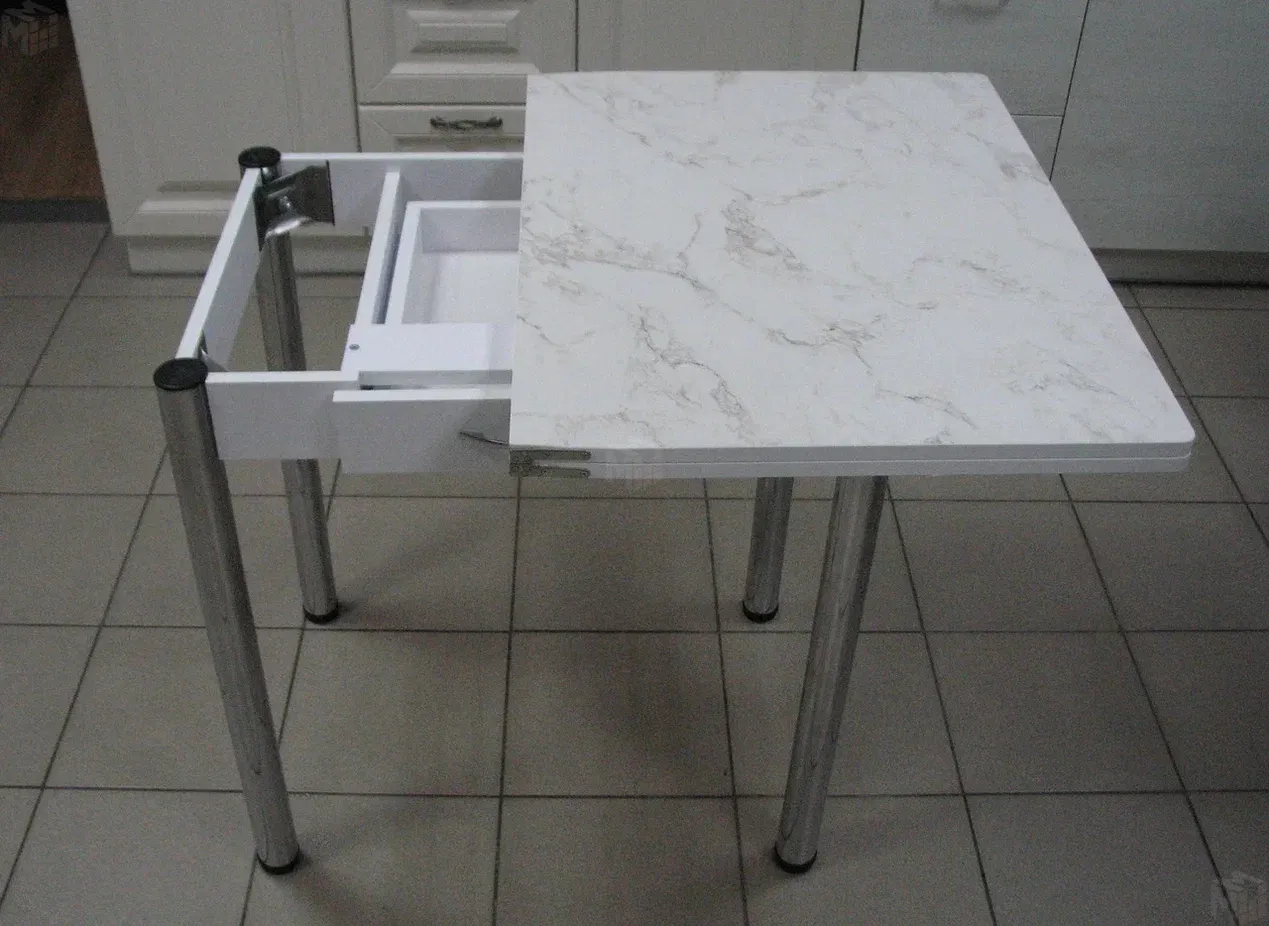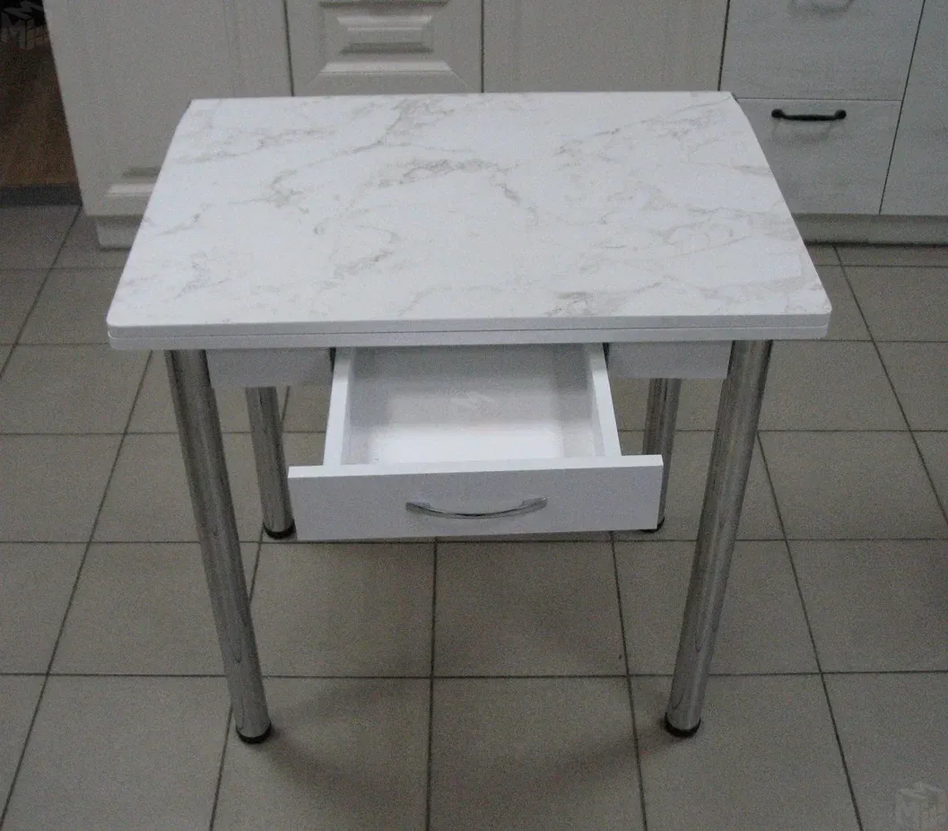 Столешница: ДСП. В собранном виде: 580 х 780 мм, разложенном виде: 780 х 1160 мм, высота: 750 мм. Ящик выдвижной. Стол легко собирается путём прикручивания ножек.