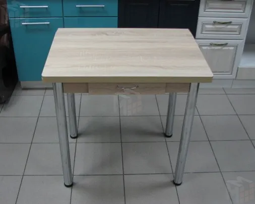 Стол Ломберный поворотно-раскладной с ящиком 780х580 (дуб сонома) ножки хром
