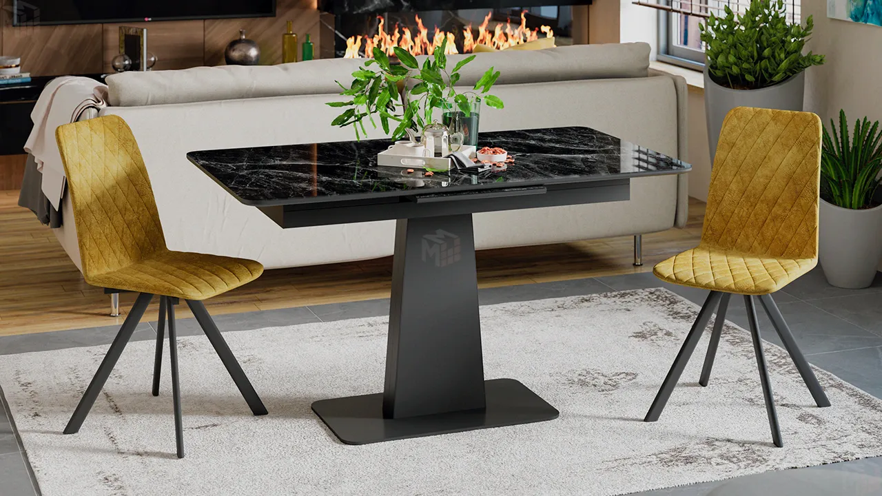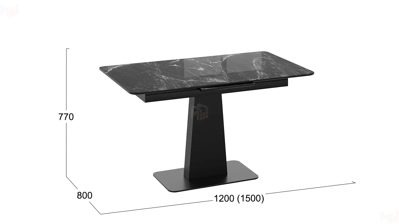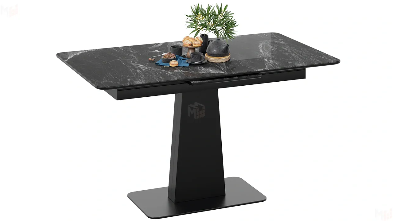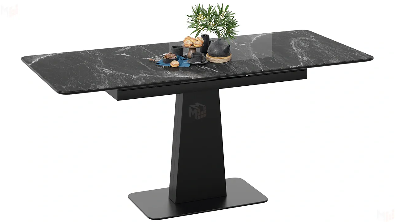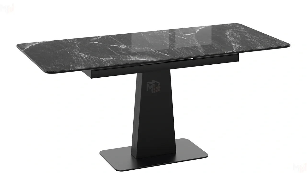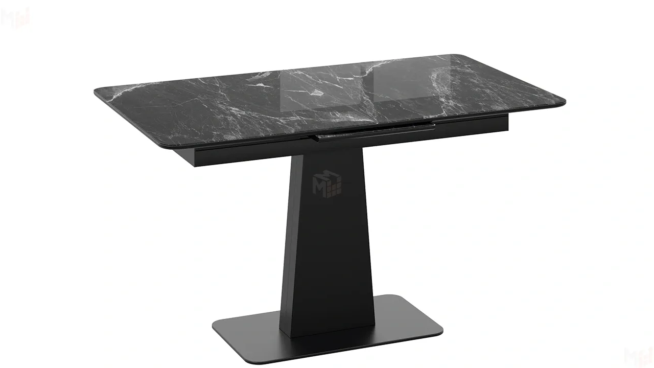 Стол обеденный Бридж Черный муар, Стекло глянцевое черный мрамор