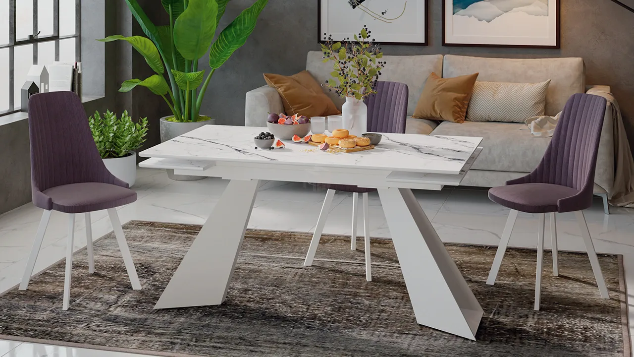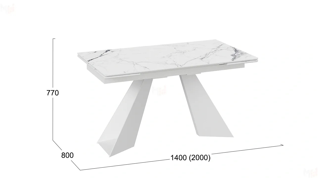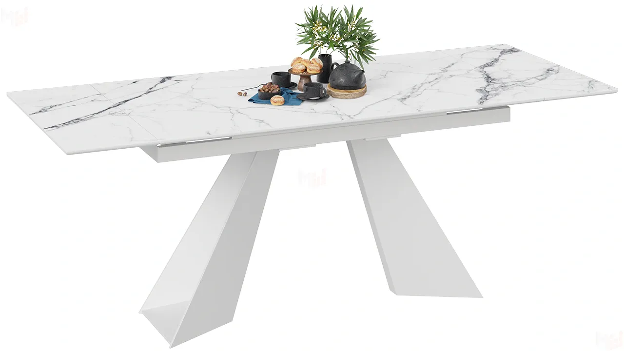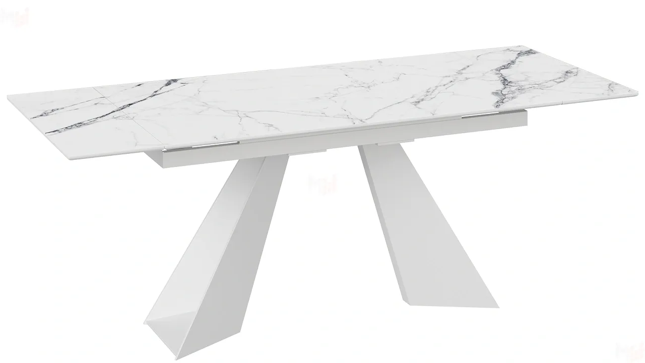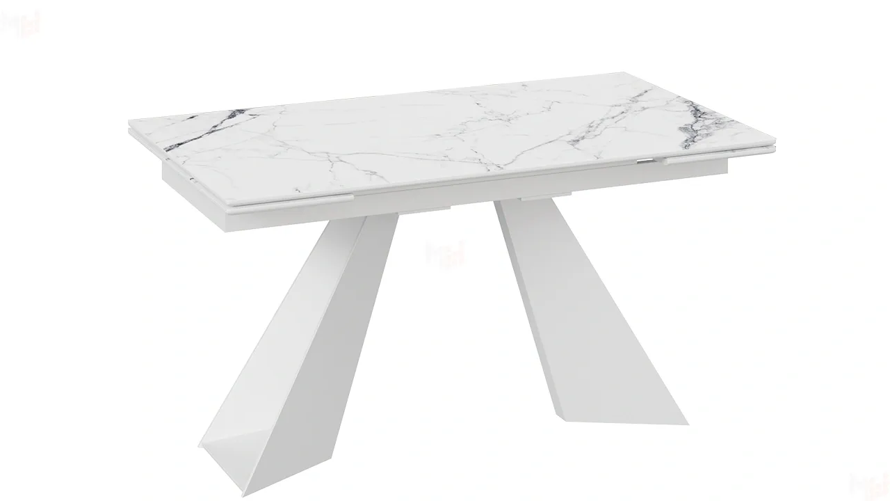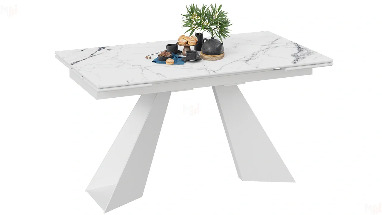 Стол обеденный Гермес Белый муар, Стекло глянцевое белый мрамор