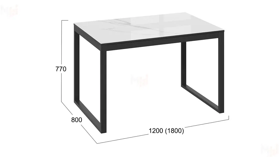 Стол обеденный Маркус Тип 1 Черный муар, Стекло белый мрамор
