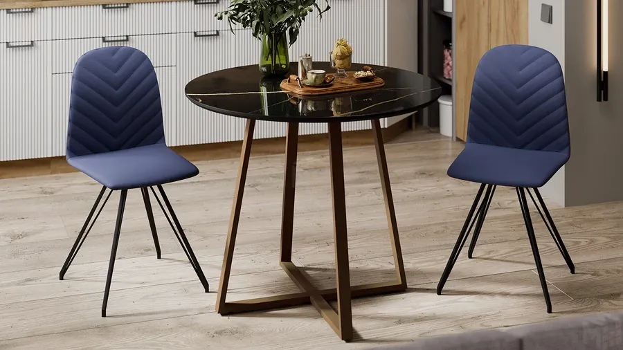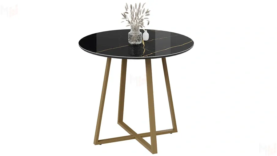 Стол обеденный Милан Тип 1 Золотой муар, Стекло глянцевое черный мрамор