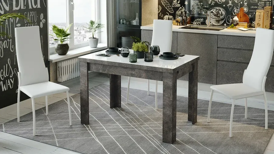 Стол обеденный Норман тип 1 Ателье темный, Стекло Белый глянец