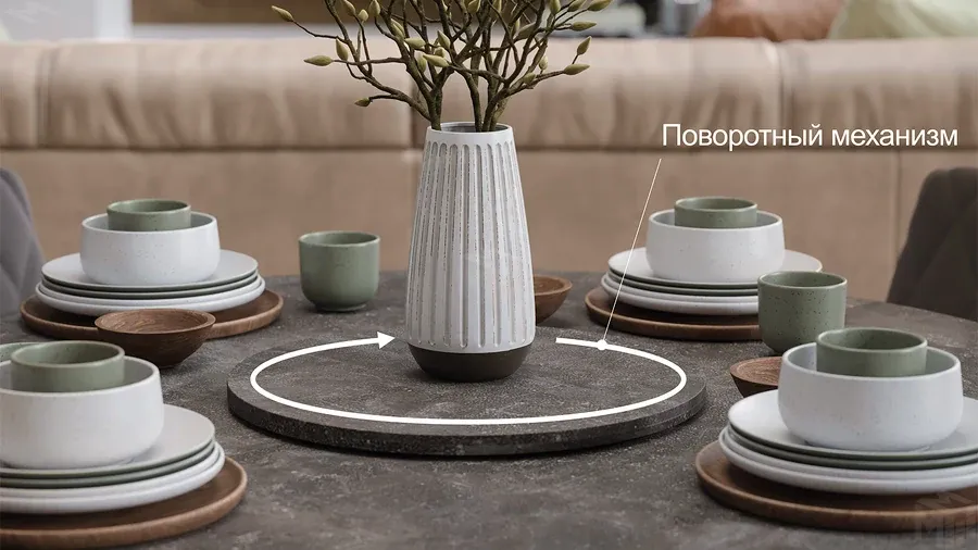 Стол обеденный раздвижной Бергамо Тип 1 Черный муар, Стекло матовое черный мрамор