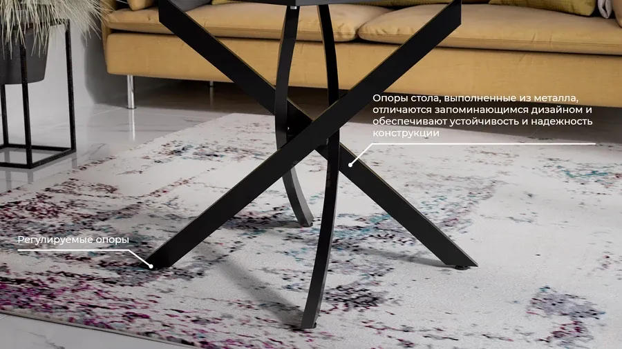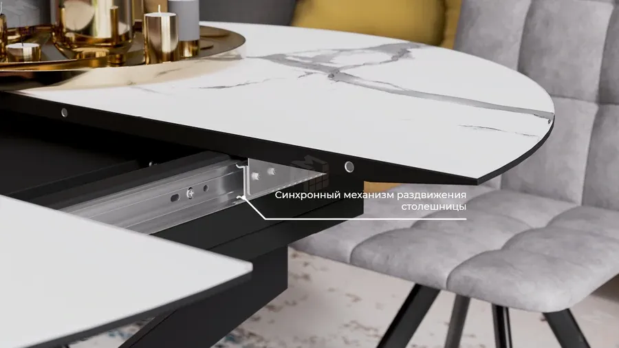 Стол обеденный раздвижной Бергамо Тип 1 Черный муар, Стекло матовое белый мрамор