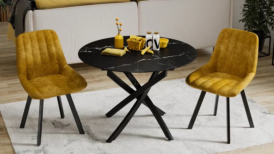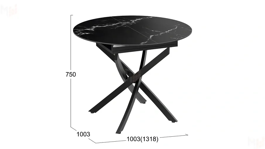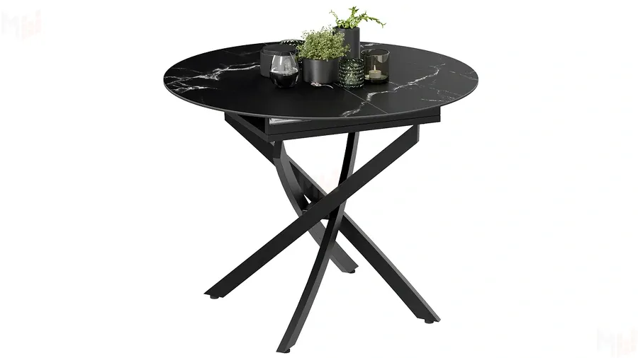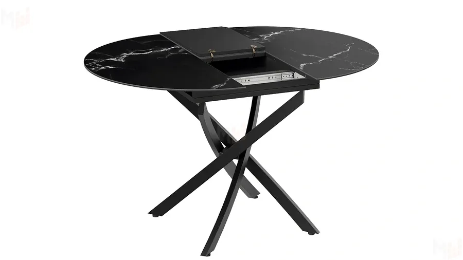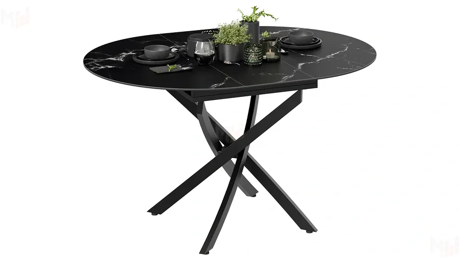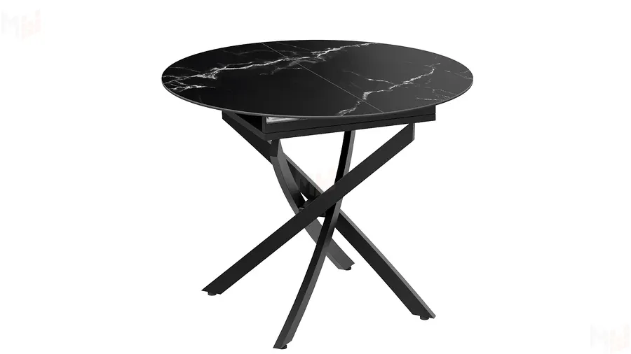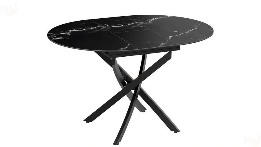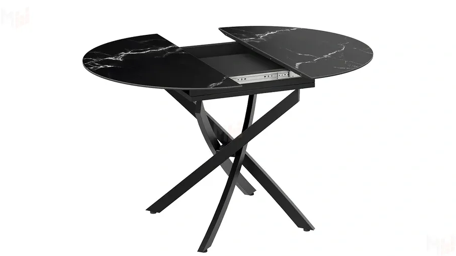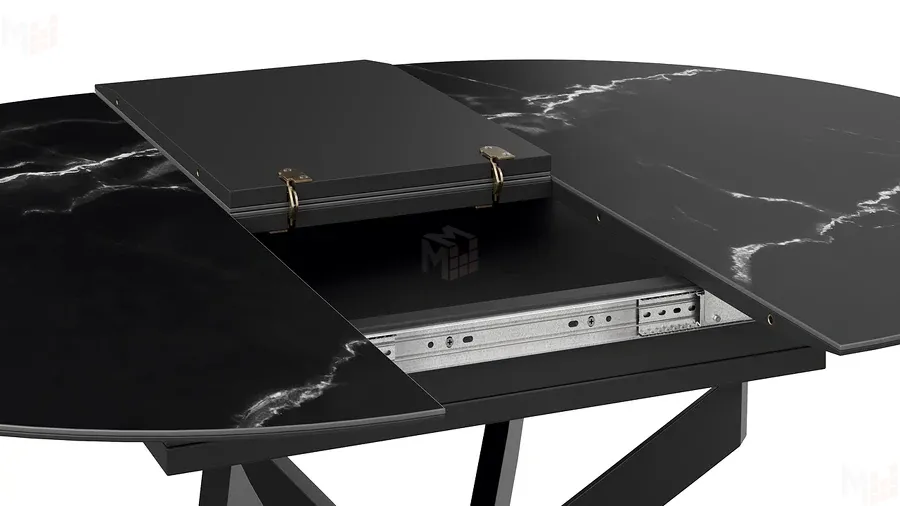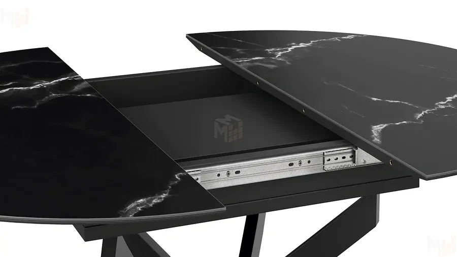 Стол обеденный раздвижной Бергамо Тип 1 Черный муар, Стекло матовое черный мрамор
