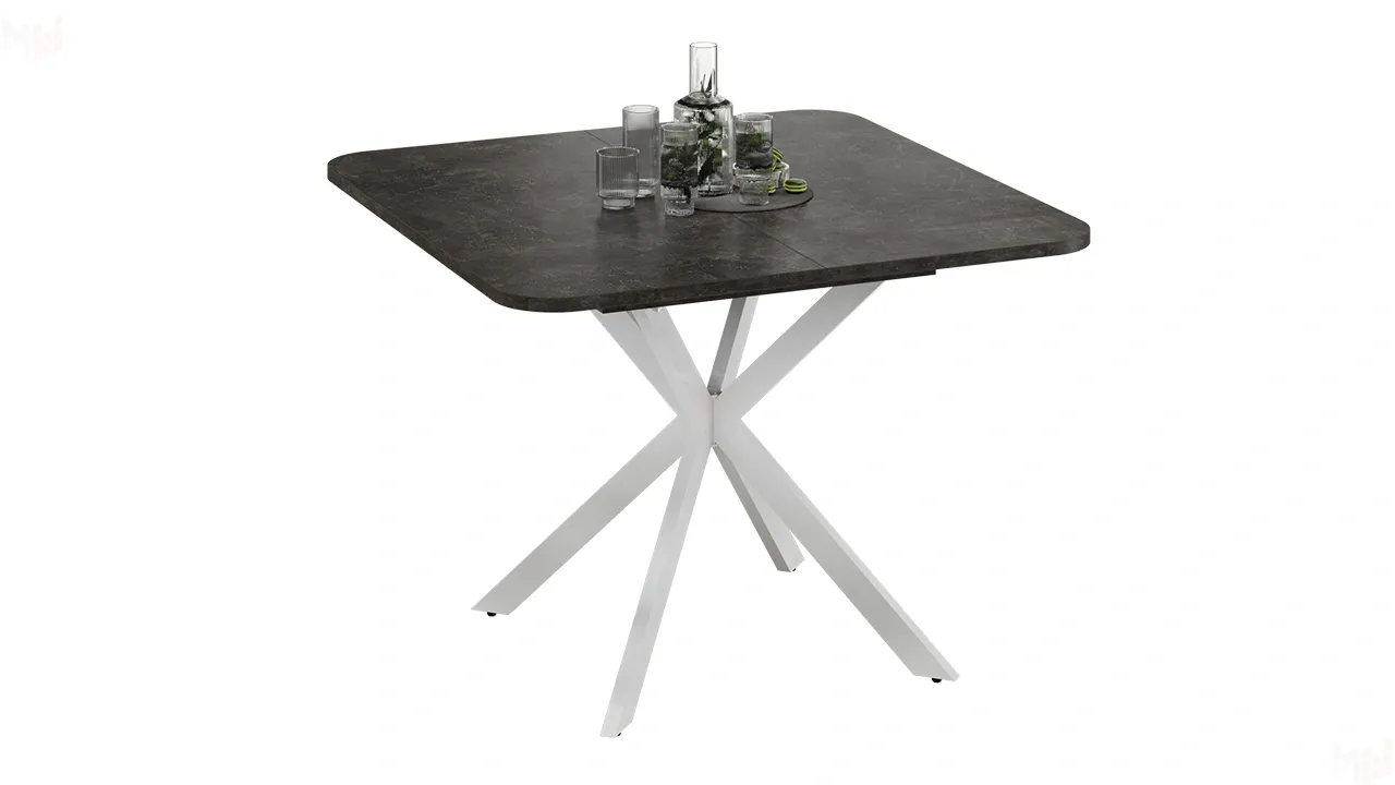 Стол обеденный раздвижной Лиссабон Тип 1 Белый муар, Ателье темный