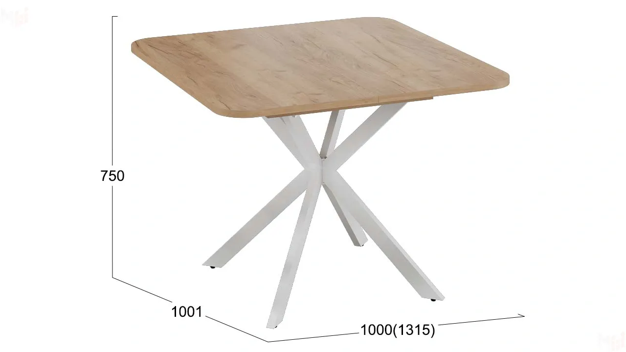 Стол обеденный раздвижной Лиссабон Тип 1 Белый муар, Дуб Крафт золотой