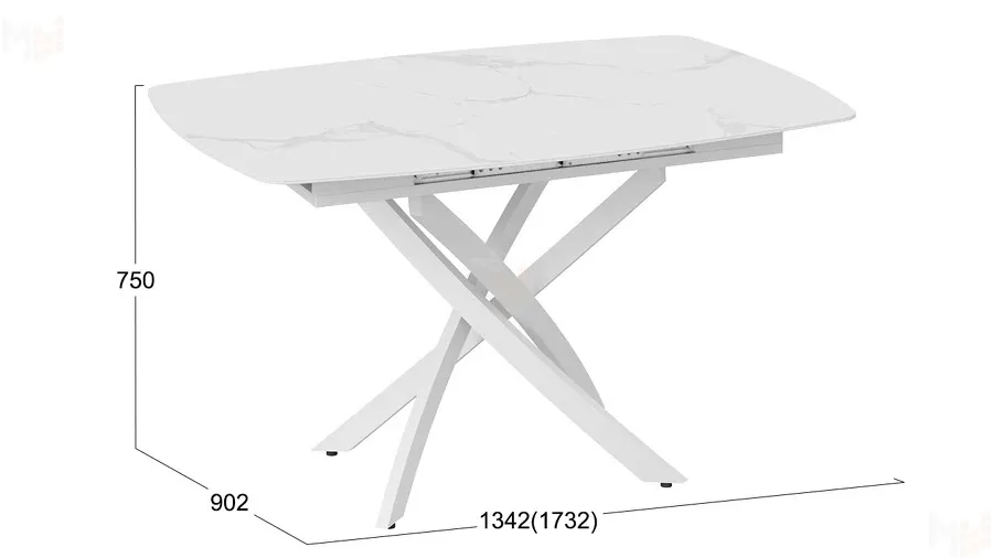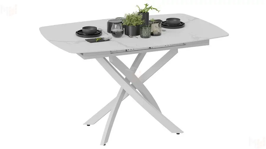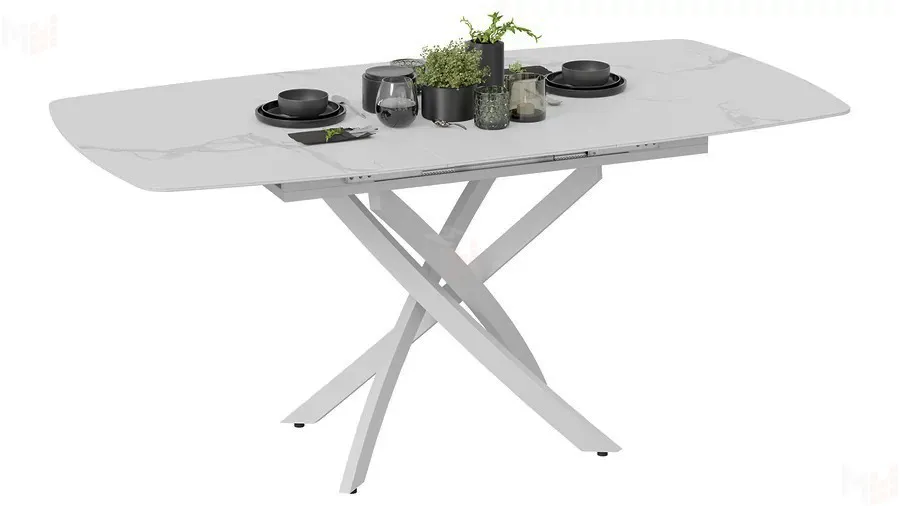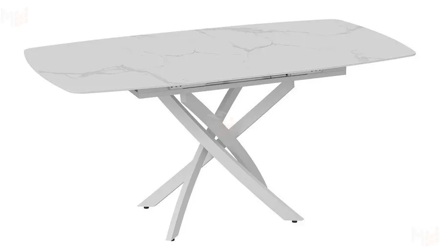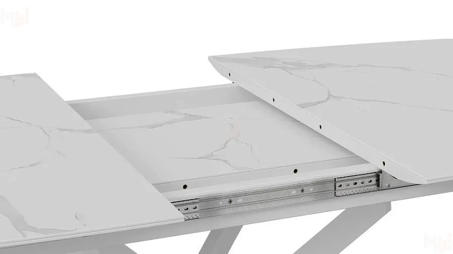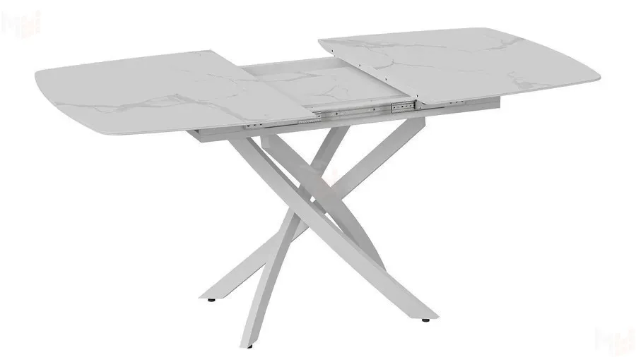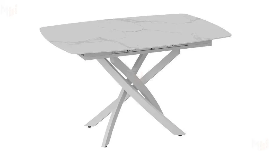 Стол обеденный раздвижной Манхеттен Т1 Белый муар, Стекло матовое белый мрамор