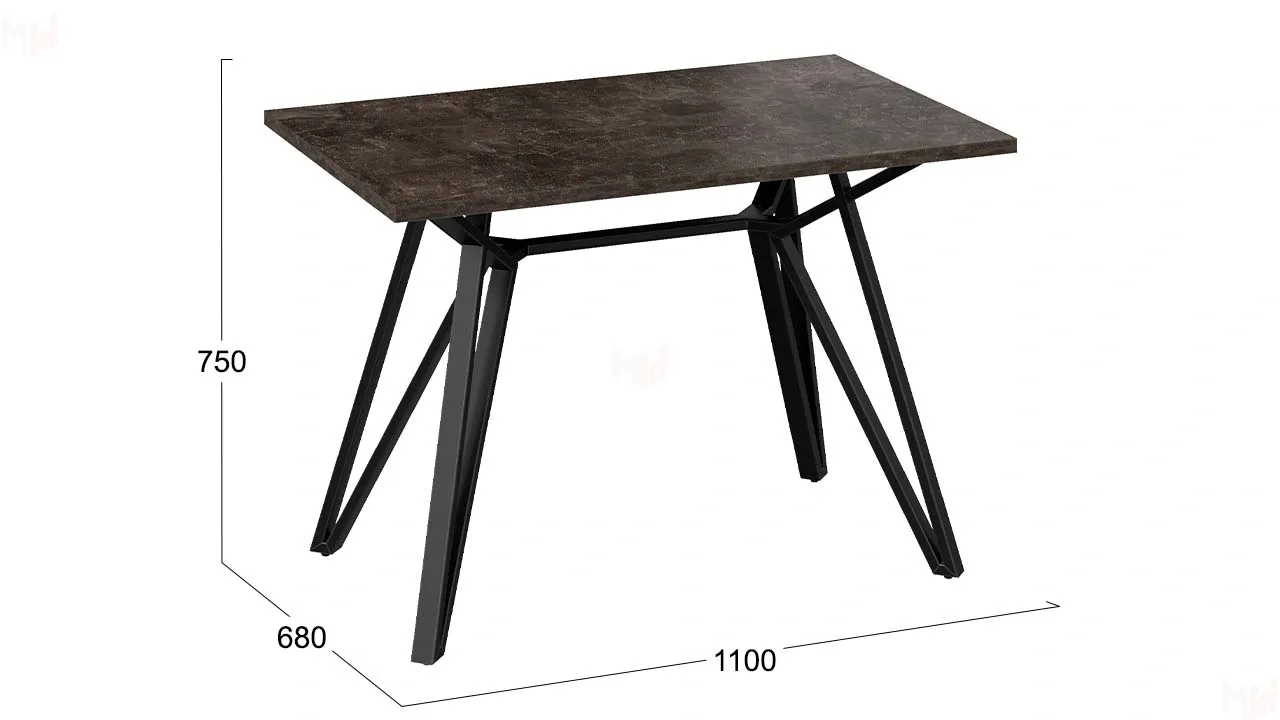 Столешница прямоугольной формы изготовлена из ЛДСП 22 мм с обработкой торцов кромкой ABS 2 мм. Опора нестандартной формы выполнена из металла, покрытого порошковой краской «Черный муар». Каждая ножка представляет собой элегантный треугольник, что добавляет геометрическую красоту и лаконичность в дизайн стола. Опора обеспечит стабильность и надежность конструкции.