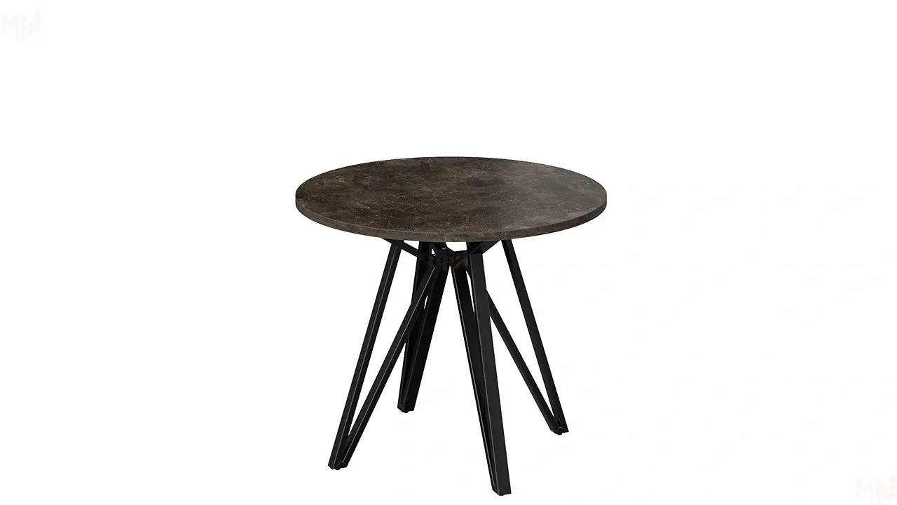 Столешница круглой формы изготовлена из ЛДСП 22 мм с обработкой торцов кромкой ABS 2 мм. Опора нестандартной формы выполнена из металла.