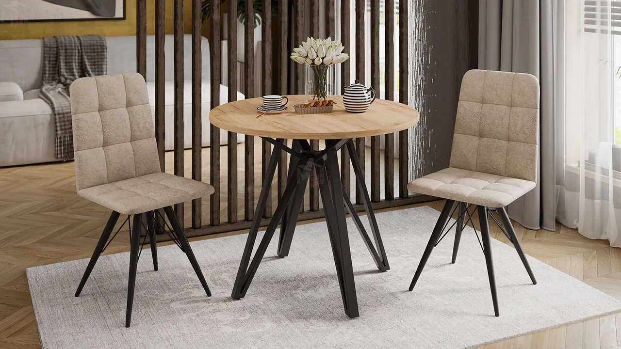 Стол обеденный Ройс Тип 2 Черный муар/Дуб Крафт золотой