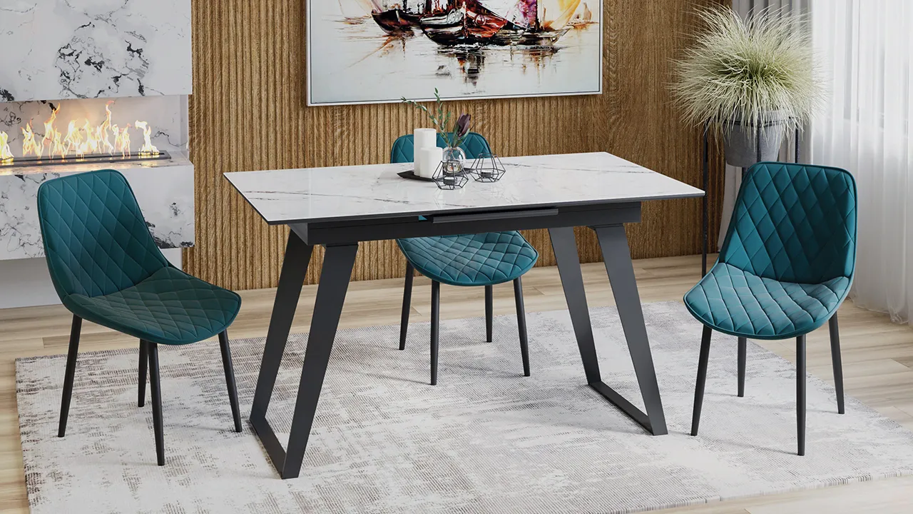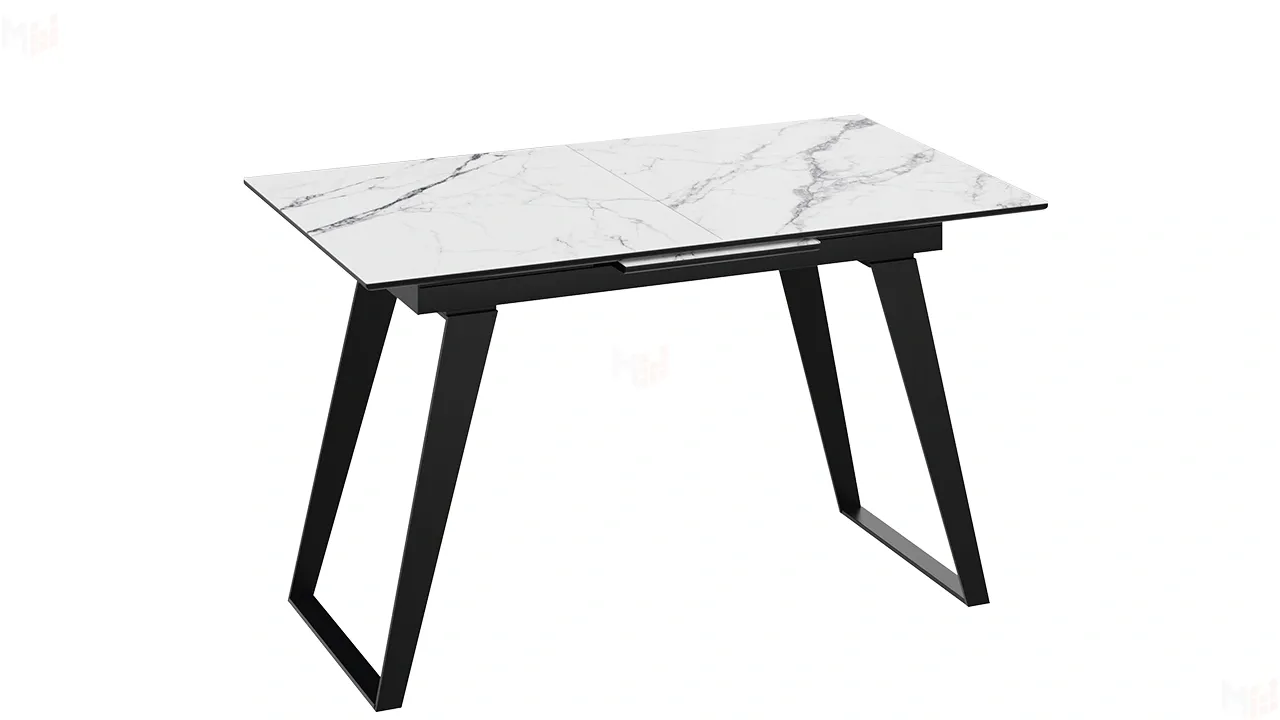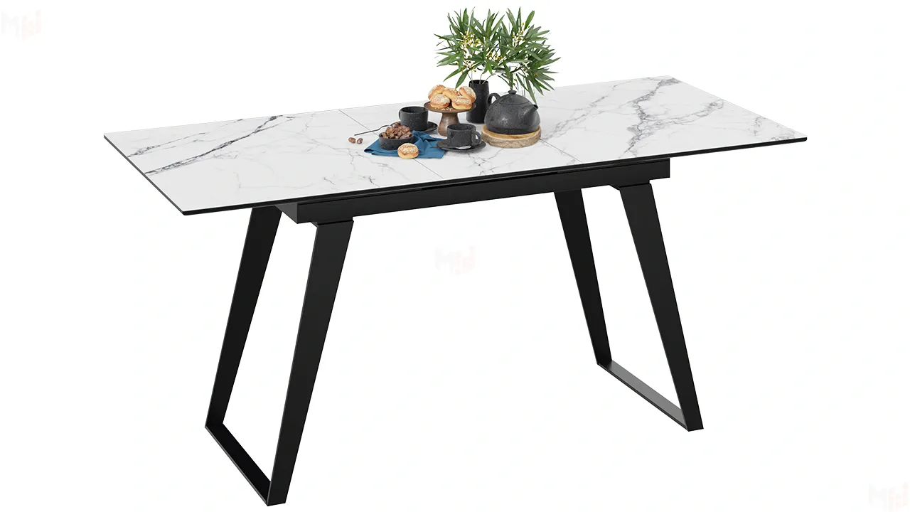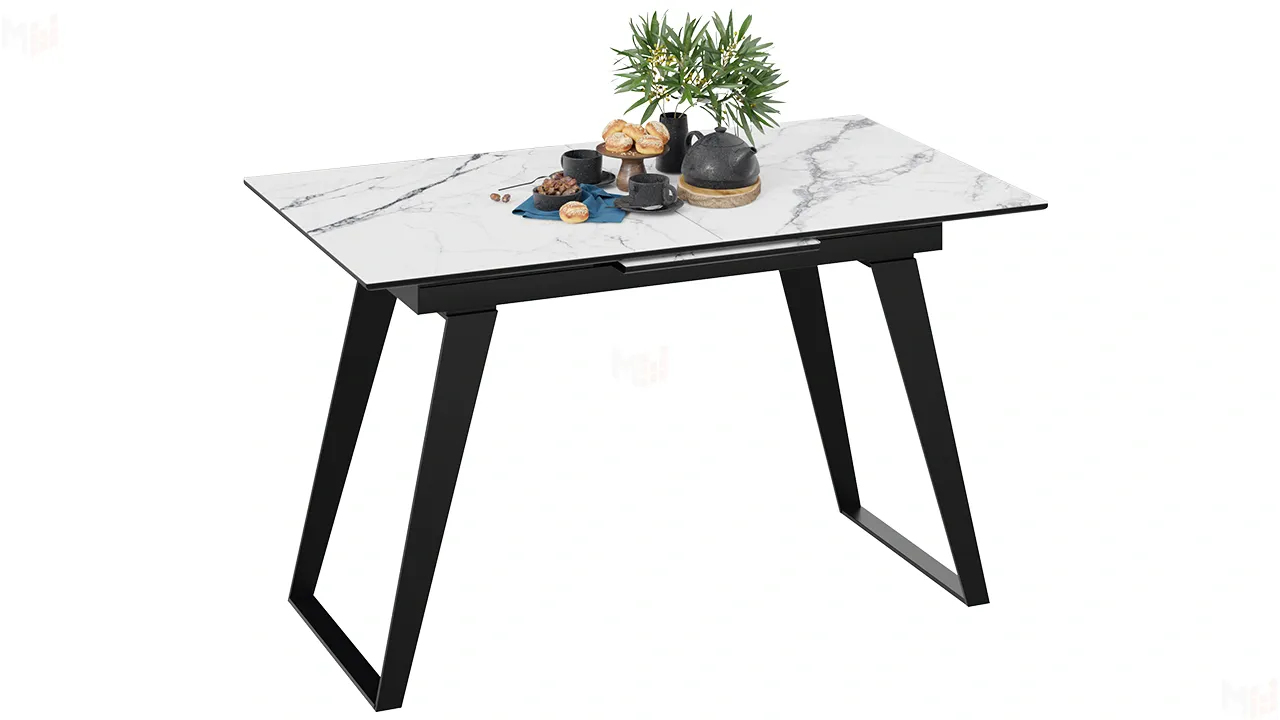 Стол обеденный Техно Черный муар, Стекло глянцевое белый мрамор