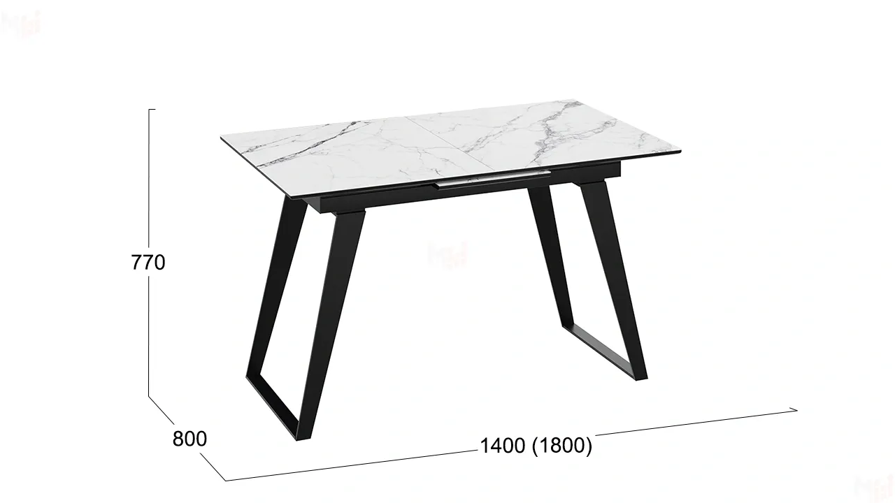 ширина 800 мм, длина 1400/1800 мм, высота 770 мм