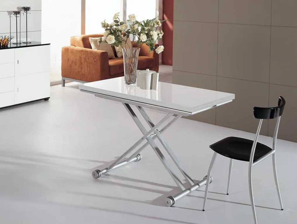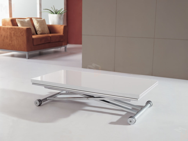 Трансформация - крышка стола поворачивается на 90˚ градусов и раскладывается в два раза. Обе столешницы - МДФ затонирован и покрыт лаком цвет белый или черный глянец. Ноги - матовые на колесах. Стол-трансформер - идеальный вариант для небольшой квартиры. Из невысокого журнального столика он превращается в солидный обеденный стол, который можно зафиксировать на любой высоте. Представляем вашему вниманию коллекцию столов-трансформеров, которые пользуются в последнее время большой популярностью и могут дополнить практически любой интерьер. Если вы поставите дома стол-трансформер, неожиданные гости не застанут вас врасплох.