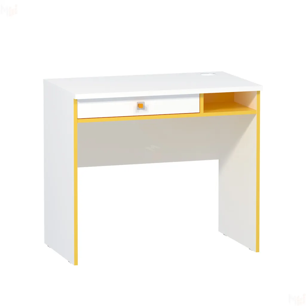 Стол письменный Альфа 12.41 будет отличным дополнением интерьера уютной детской. Изделие поможет создать необычайно комфортное рабочее место. Модель имеет широкую столешницу, на которой можно разместить ноутбук, стопку книг и при этом спокойно делать записи в тетради. Небольшой выдвижной ящик и открытая ниша пригодятся для хранения всех необходимых принадлежностей.