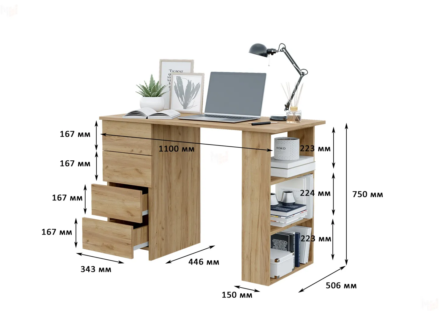 Стол выполнен из ЛДСП цвета крафт золотой толщиной 16 мм.