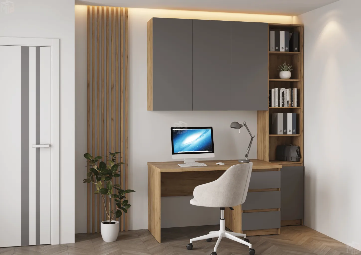 Тумба с 3-мя ящиками (Д.450 х В.728 х Г.606 мм) может быть установлена и справа, и слева (универсальная сборка).
