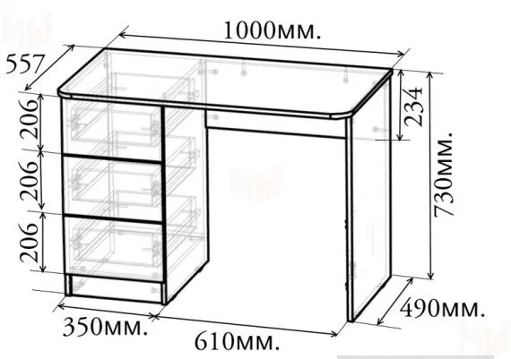 Стол подойдет в любую комнату благодаря компактным размерам. Модель универсальная.