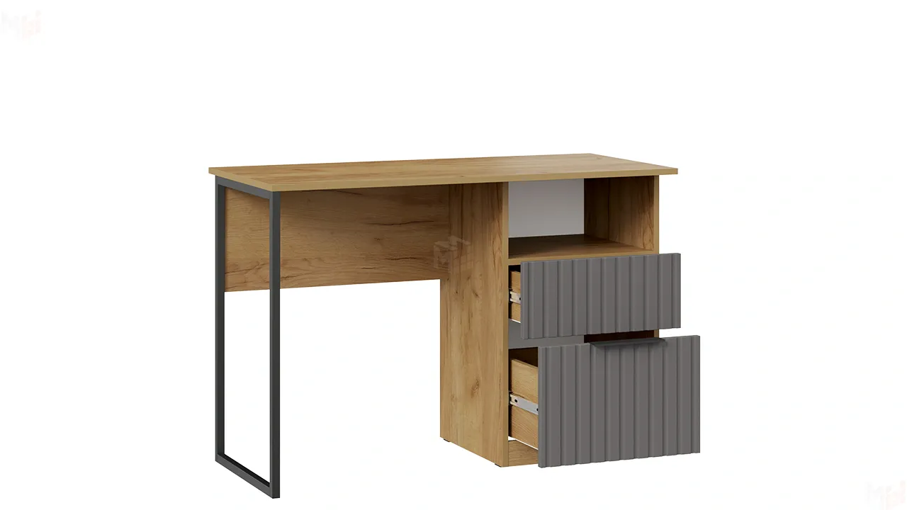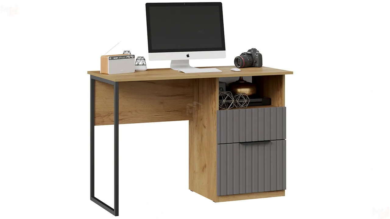 В идеальной детской обязательно должен быть удобный стол. И если следовать рекомендациям дизайнеров, нужна модель, которая не займет слишком много места, но при этом обеспечит максимальный комфорт. Стол письменный Хилтон Тип 1 - 404.005.000 Графит с габаритами 1102х503х750 — отличный вариант по всем критериям. Он гармонично будет смотреться в комнате, и у ребенка будет своя обустроенная зона для работы и хобби. Бренд ТриЯ сделал ставку на универсальный стиль, чтобы стол легко сочетался с другими предметами интерьера, но ничто не мешает вам сделать его и визуальным акцентом в стилевой концепции.