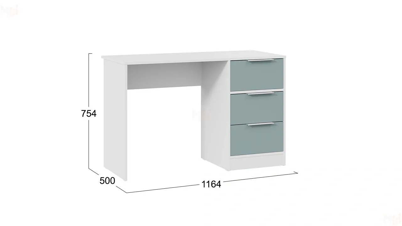В идеальной детской обязательно должен быть удобный стол. И если следовать рекомендациям дизайнеров, нужна модель, которая не займет слишком много места, но при этом обеспечит максимальный комфорт. Стол письменный Марли Тип 1 - 403.003.000 Белый Серо-голубой с габаритами 1164х500х754 — отличный вариант по всем критериям. Он гармонично будет смотреться в комнате, и у ребенка будет своя обустроенная зона для работы и хобби. Бренд ТриЯ сделал ставку на универсальный стиль, чтобы стол легко сочетался с другими предметами интерьера, но ничто не мешает вам сделать его и визуальным акцентом в стилевой концепции.