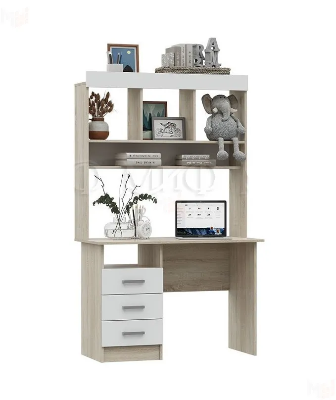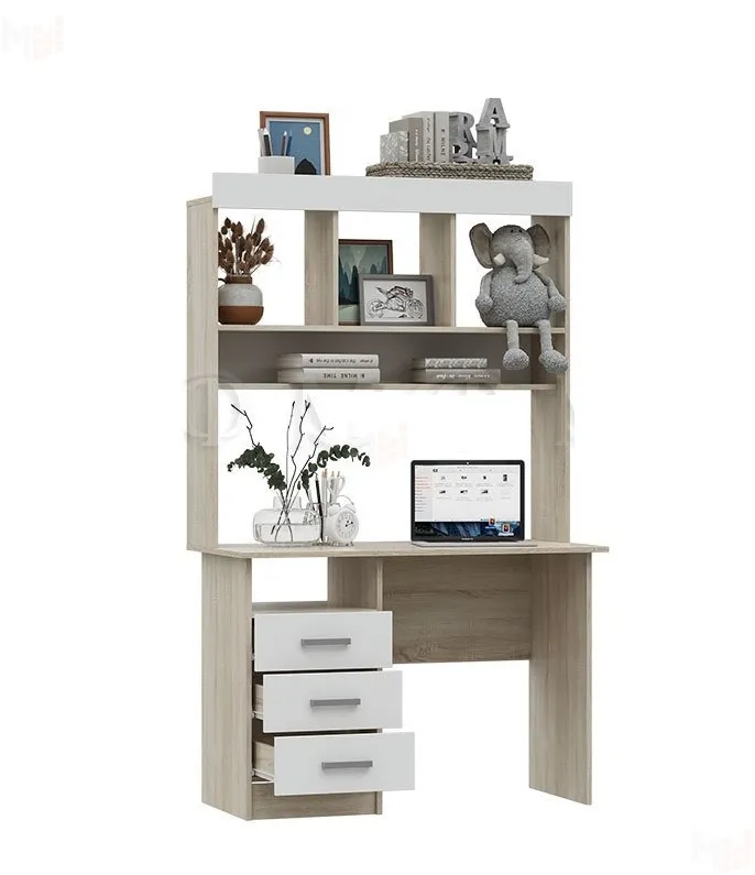 Стол выполнен из ЛДСП цвета Дуб сонома/Белый глянец.